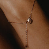 Chic and elegant golden line on your wrist. Finished with a smooth and playful solid gold drop. A pleasant piece you will never want to take off.