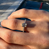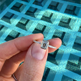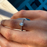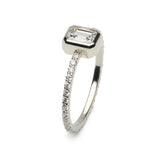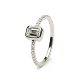 Our vision of the perfect, classic engagement ring. This shape of a diamond is very Art Deco, set into thin & opened minimalistic setting. This treasure is laying on a thin ring fully covered with small 1.2mm diamonds.