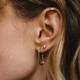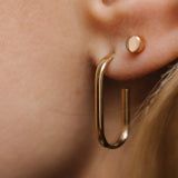 A pair of classy solid gold earrings. This time we went larger with the shape, yet remaining minimal. Oval hoops are here to prettify your day, no matter if it's hoodie time, business meeting or a date.
