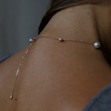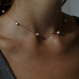 Statement necklace. Charming and impressive as a bouquet of white peonies. The size of pearls organically differs, creating a playful look. Finished with a golden drop at the back.