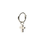 - 18K white gold hoop comes with 14K white gold cross and rhodium plating