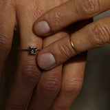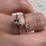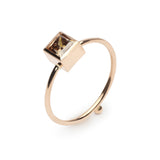 The simplicity of shape never goes out of style. Natural champagne diamond set into a golden cube. Finished with a little signature golden dot.