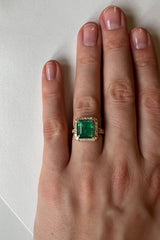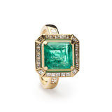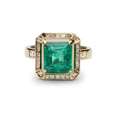 An icon of the Art Deco era. Timeless statement piece. Stunning precious emerald set into frame of the square diamonds.