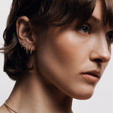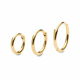 Just a perfect, simple golden hoops. Made of solid 18K gold. Seamless & ergonomic closure, suitable for all of your ear piercings. Beautifully matches with any other jewelry. Available in 3 sizes as a single piece.