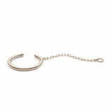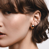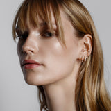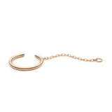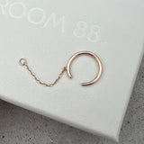 A solid gold hoop that fits perfectly around your helix. Secured by a chain that gracefully drapes behind your ear and attaches with your regular earring closure.